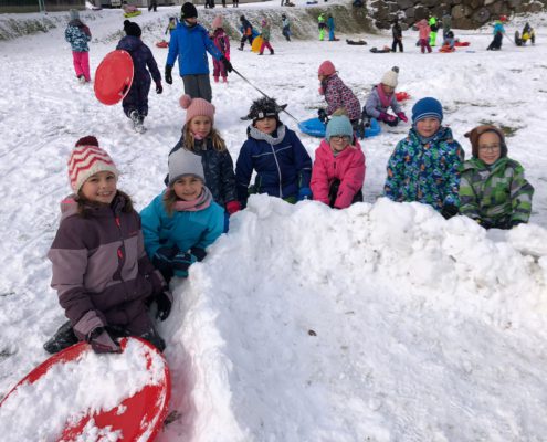 Am 30. November 2023 genossen die Kinder der Volksschule den ersten Schnee im Schulhof.