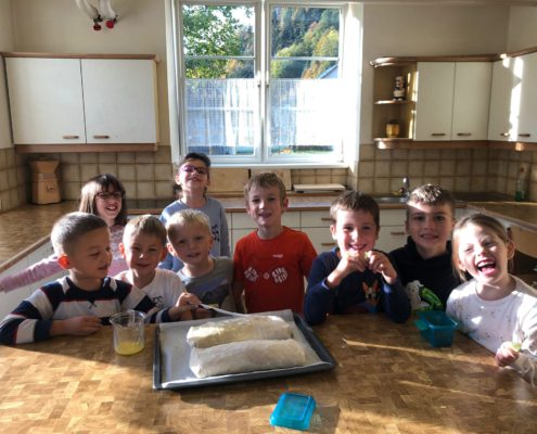 In der siebenten Schulwoche drehte sich in der 1. Klasse alles um das Thema „Apfel“. Nachdem wir viel Neues über das Obst gelernt haben, wurde ein Apfelstrudel in der Schulküche gebacken.
