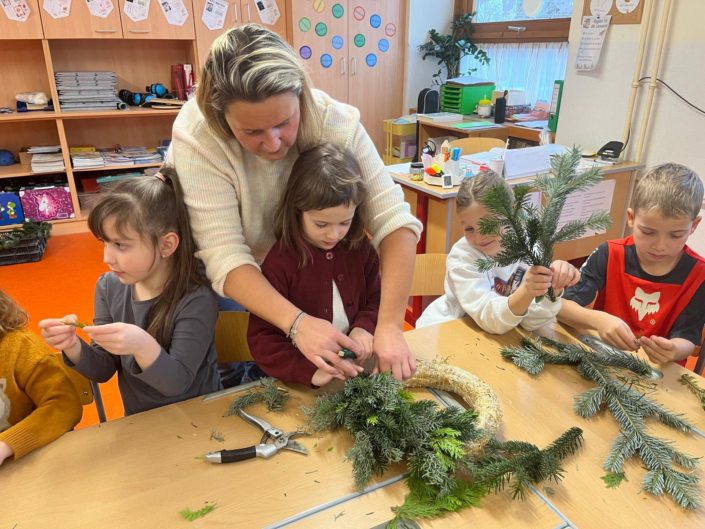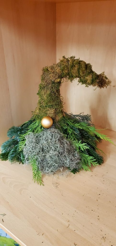 Am 25. November bekam die 1. Klasse Besuch von Frau Baumgartner. Gemeinsam wurde ein schöner Adventkranz gebunden und ein frecher Wichtel gestaltet.