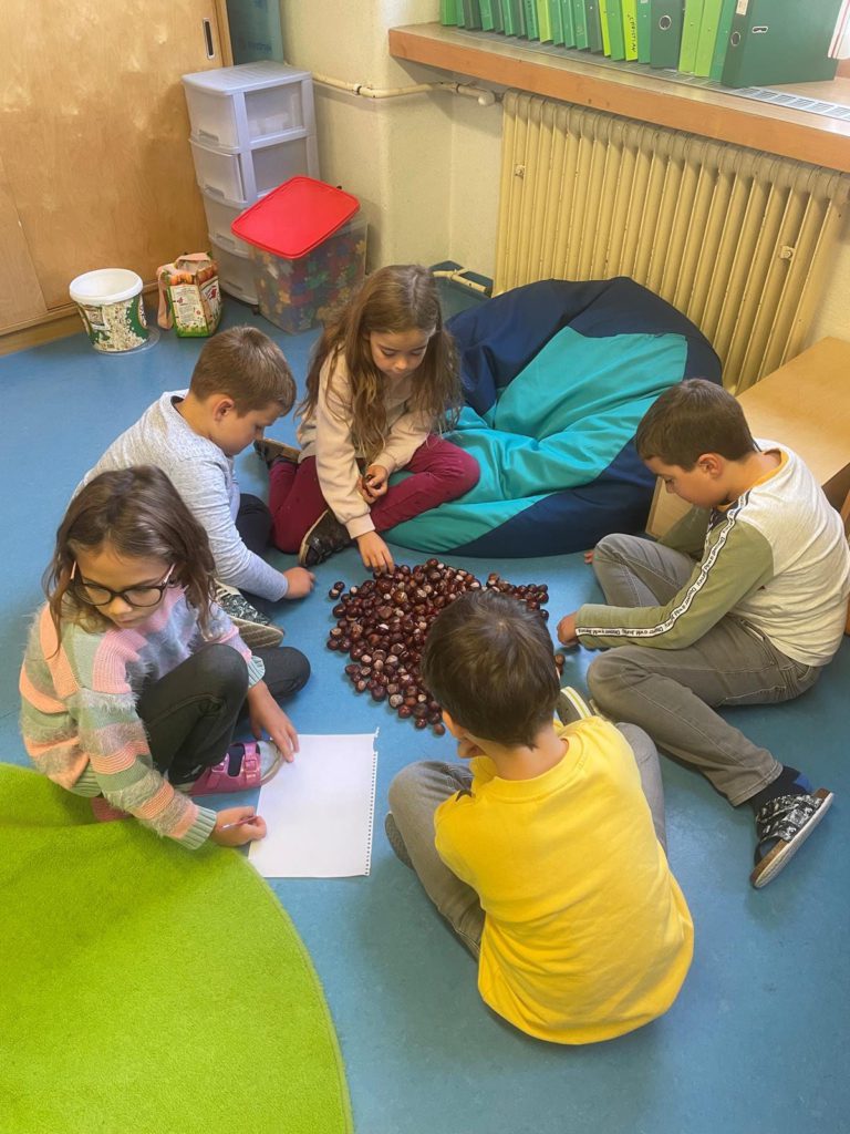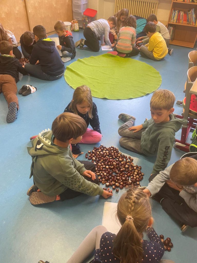 Nachdem die Kinder der 2. Klasse so fleißig Kastanien gesammelt haben, wurden diese gleich im Unterricht genutzt.